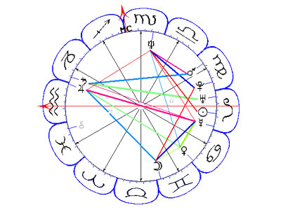 מהם הקווים הצבעוניים הנמצאים בחלק הפנימי של המפה? כוכבים מסוימים יוצרים ביניהם קשר המכונה "היבטים". הקווים הכחולים מייצגים הרמוניה בין אותם כוכבים, האדומים מייצגים התנגשות והירוקים אתגר.