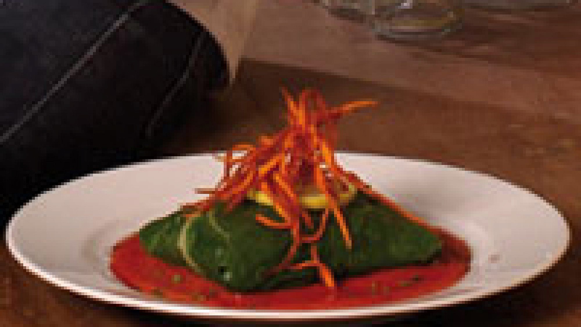 מאפה דג ומנגולד בקרם פלפלים