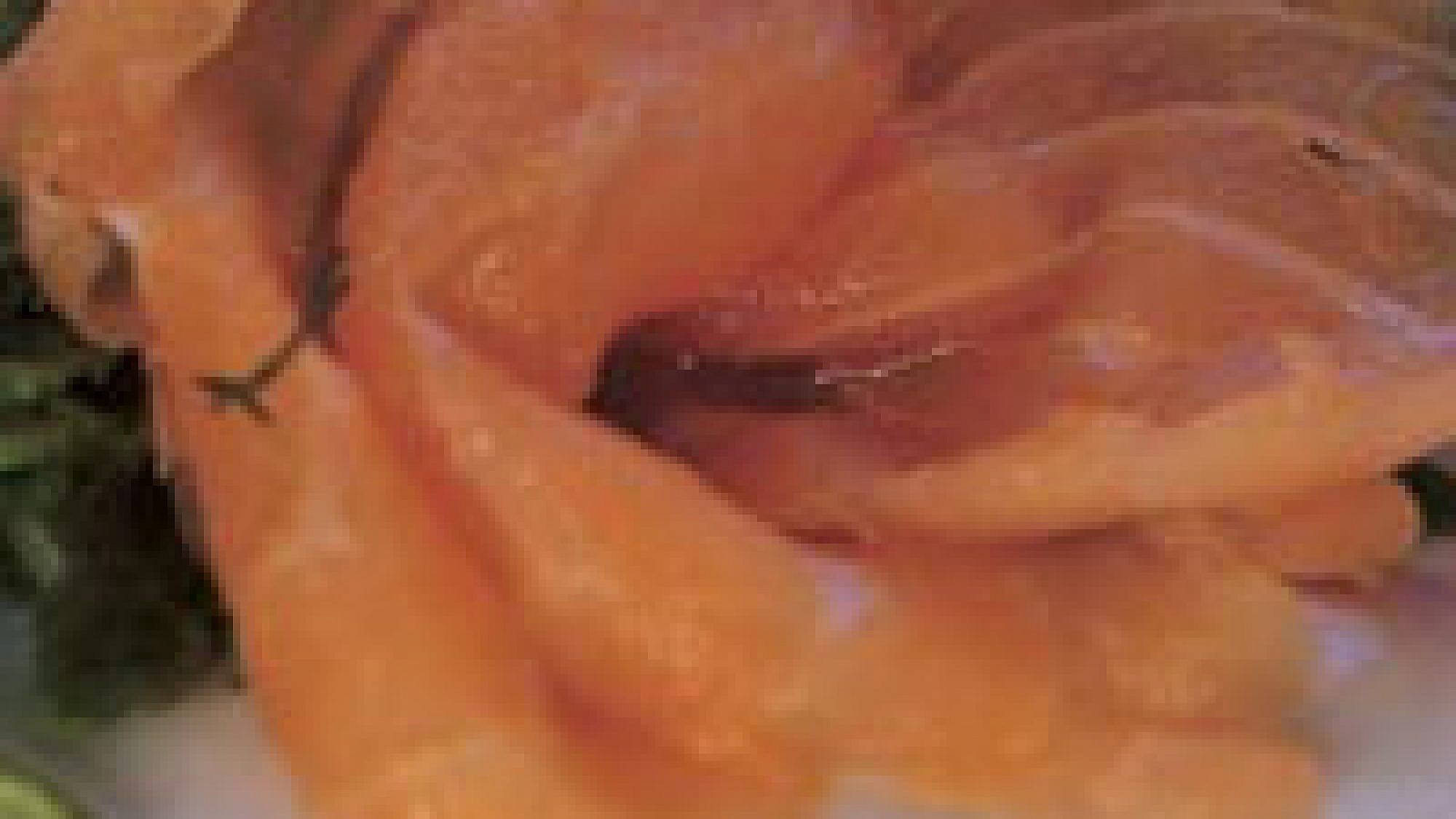 - חותכים את הסלמון הכבוש לפרוסות דקות לאורך, יוצרים את הפרחים ומפזרים