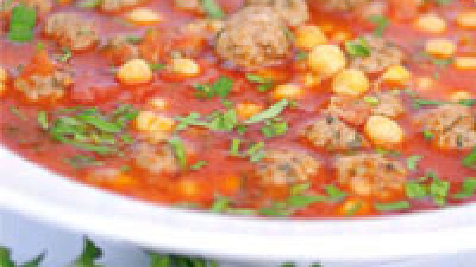 - מוסיפים מים ומביאים לרתיחה. ממליחים ומוסיפים את כדורי הבשר. מבשלים כ-20 דקות על להבה בינונית.