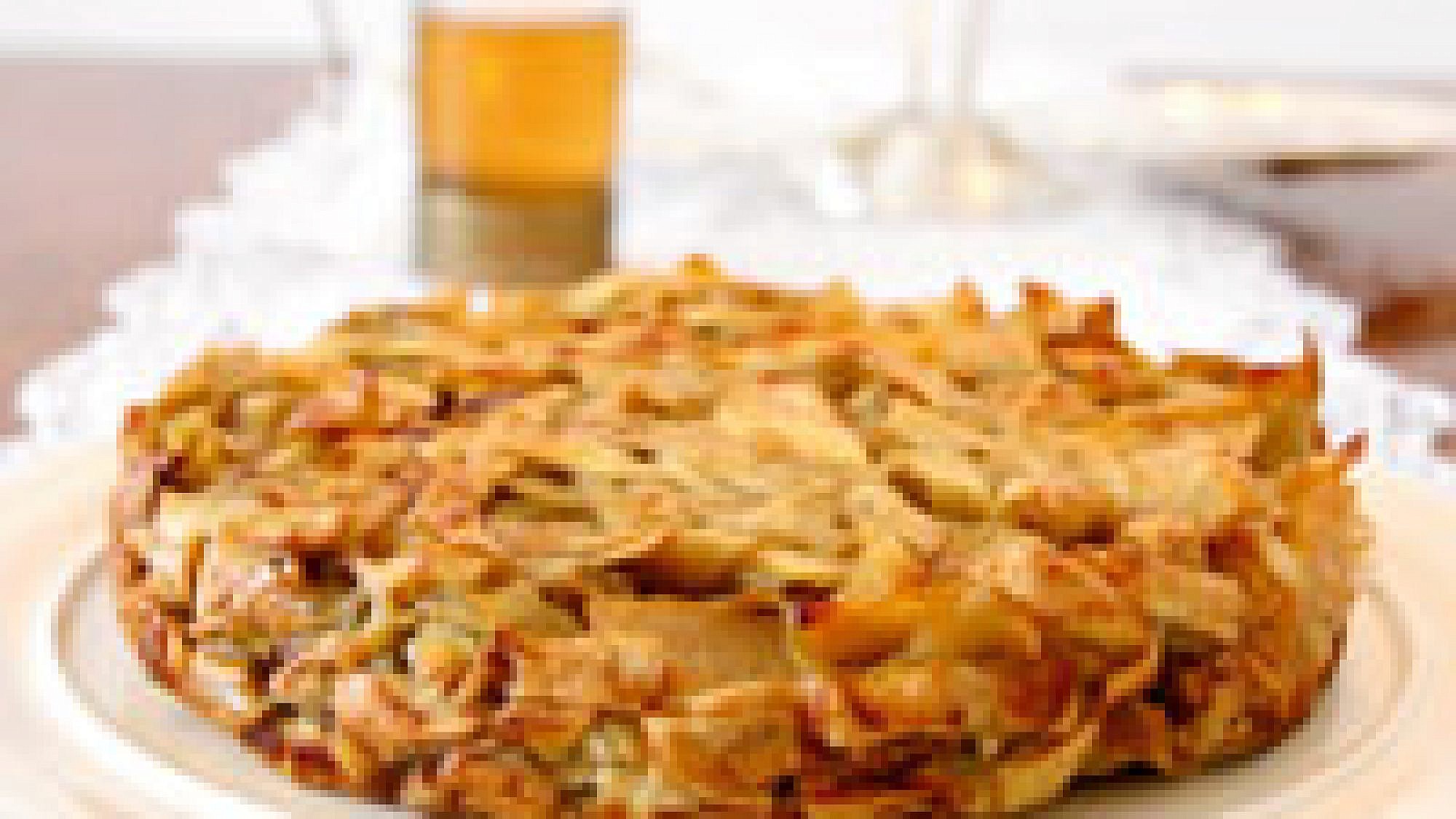 - מעבירים את התערובת לתבנית משומנת, מהדקים את התערובת, מפזרים חתיכות חמאה קרה על האטריות ומכסים בנייר כסף.