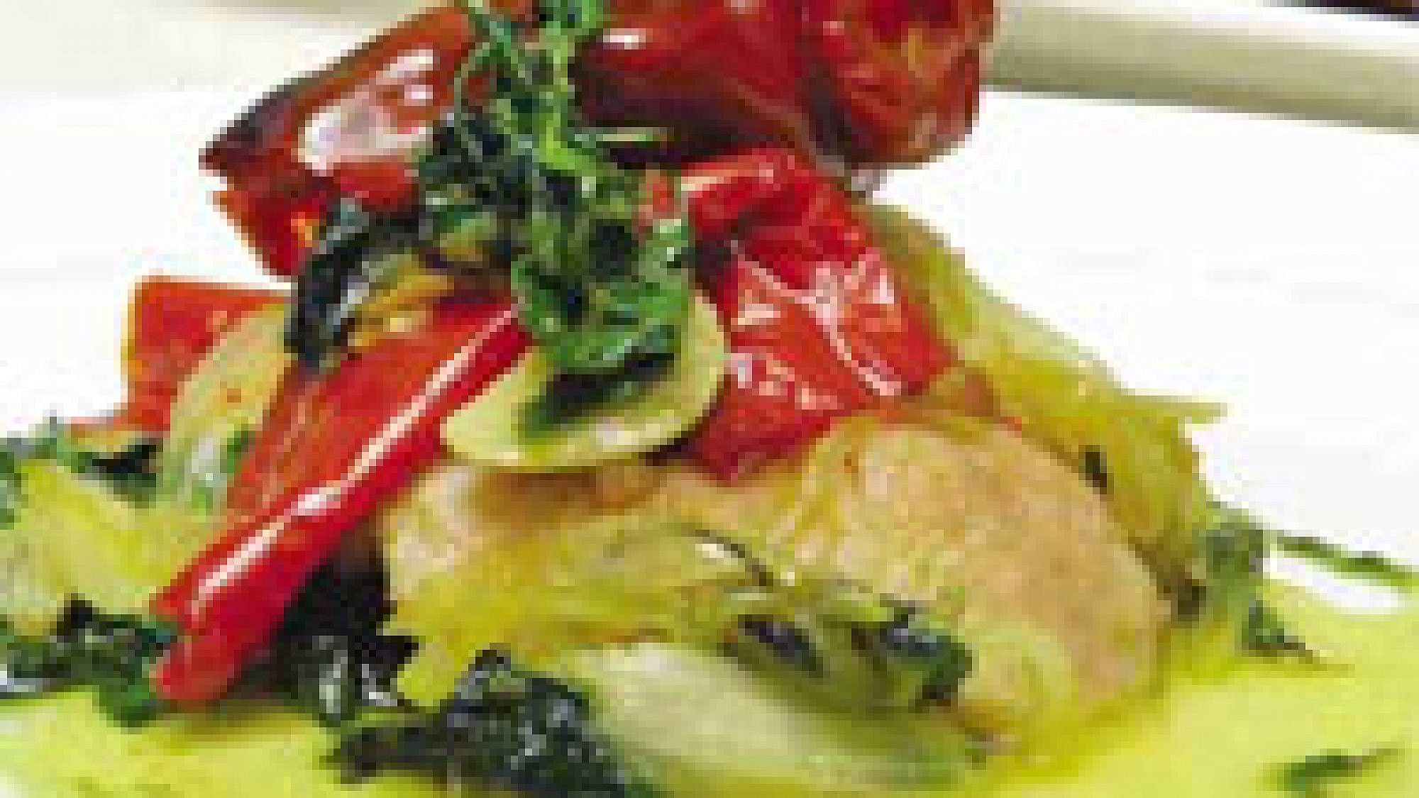 - 6 פלפלים מיובשים, מושרים במים חמים במשך חצי שעה ומסוננים