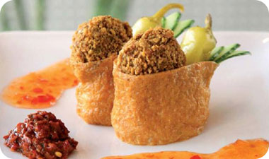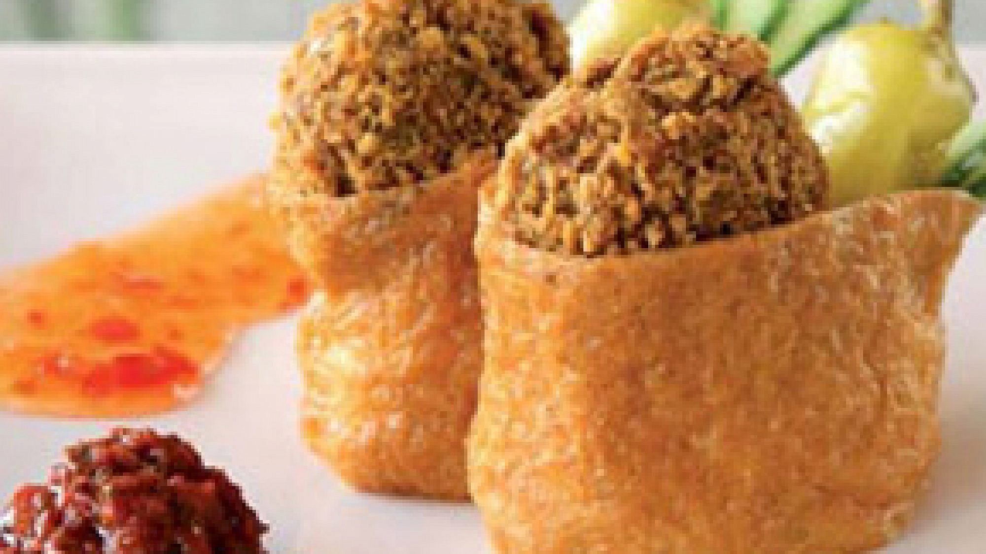 - מכניסים לתחתית האינארי אורז לסושי, ממלאים כ-1/3 אינארי. מעליו מכניסים 3 כדורי פלאפל. טובלים ברוטב לפי הטעם.