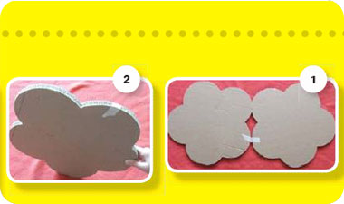 - קחו שתי חתיכות קרטון בגודל 35X35 סנטימטר, ציירו פרח וחתכו אותו בעזרת משור או סכין
