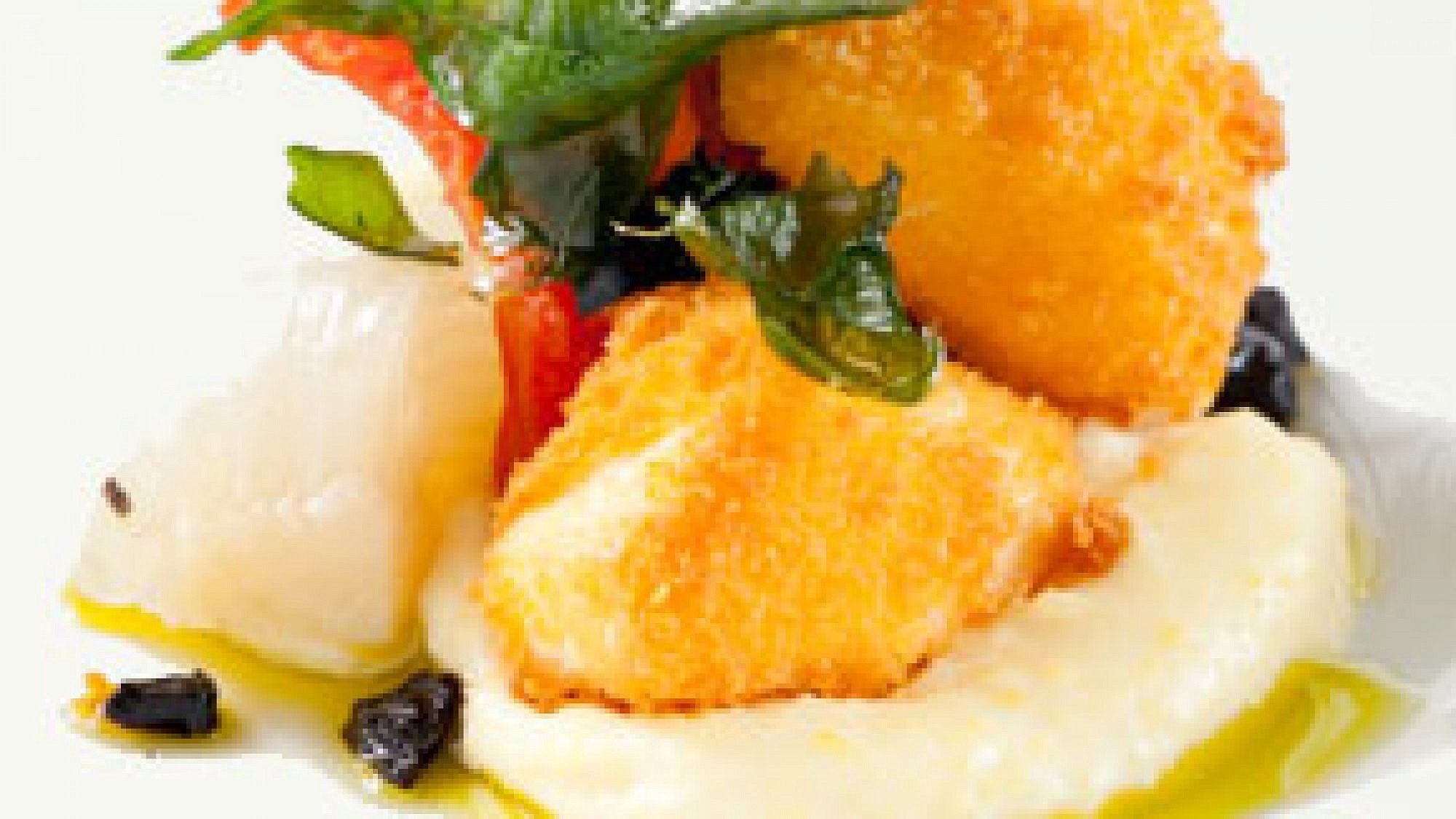 מתכון נפלא ומרענן לגבינה מצופה על פולנטה של שף חיים טיבי, ממסעדת "מוסקט"