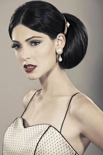 מראה קוקו מוקפד, מנופח מקדימה ואלגנטי, המגולגל בסגנון רקדניות הפלמנקו.