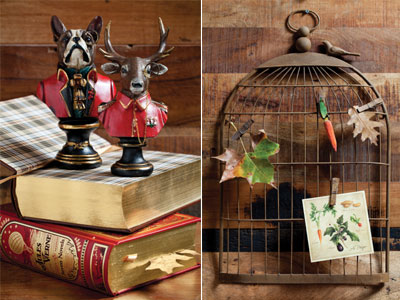 מימין: לוח ממו בצורת כלוב + 4 אטבי עץ, 295 שקלים. סטלה ממי | משמאל: פסלי אייל וכלב דקורטיביים, 121 שקלים לזוג. פלורליס