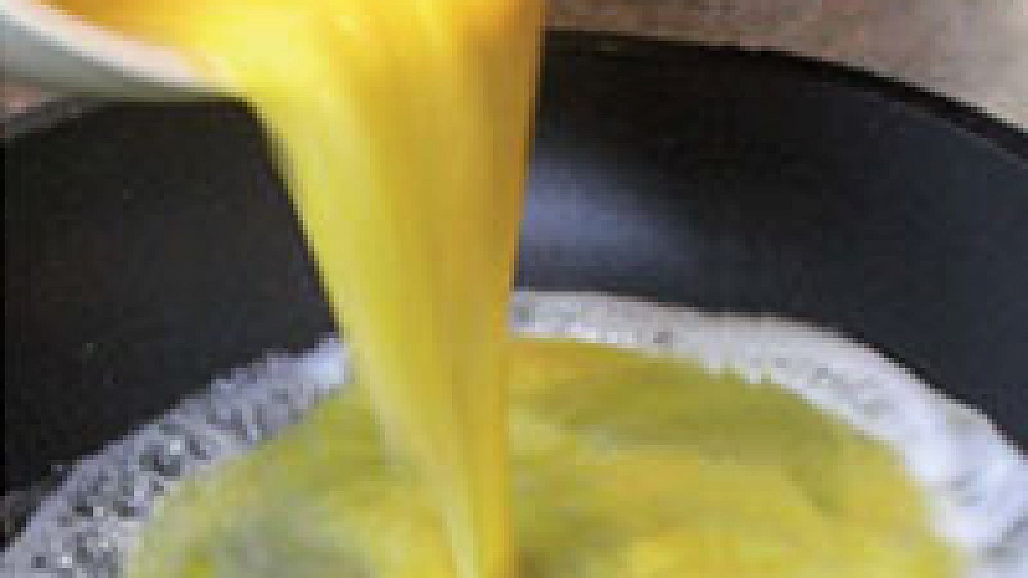 - ממלאים סיר קטן במים עד מחציתו, מביאים לרתיחה ומנמיכים את הלהבה למינימום. מניחים את הקערה עם החלמונים על הסיר (מקפידים שהמים לא יגעו בקערה).