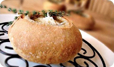 - מסירים בסכין לחם חדה את חלקו העליון של כל לחם ומרוקנים את החלק הרך.