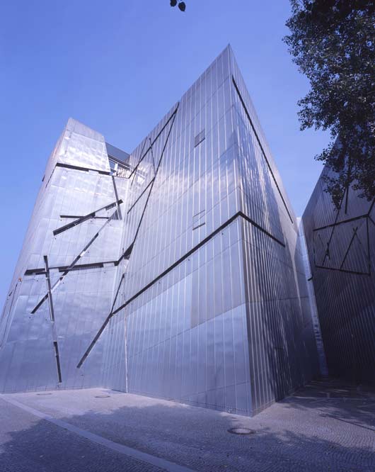המוזיאון היהודי בברלין מורכב מבניין ישן בסגנון הבארוק מאמצע המאה ה־18 ומבניין חדש שתכנן האדריכל דניאל ליבסקינד, שנחנך בשנת 2001 ועורר סערה בשל עיצובו הלא קונבנציונלי. המבנה תוכנן בצורת זיגזג שמבוסס על שני קווים: האחד שבור והשני חותך דרך כל הבניין. במפגש בין שני הקווים תוכננו חללים אנכיים בעלי קירות בטון חשופים, ללא בקרת אקלים וכמעט ללא תאורה מלאכותית, אשר מייצגים על פי ליבסקינד את מה שלא ניתן להציג כאשר עוסקים בהיסטוריה היהודית בברלין: הומניות שהפכה לאפר.