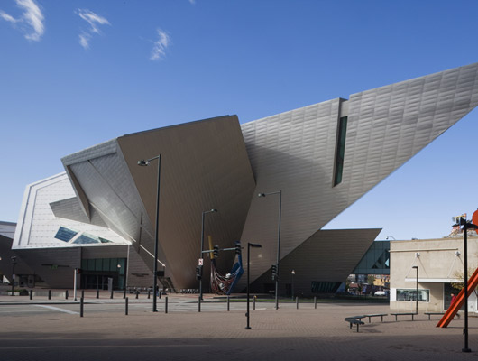 הבניין מתפרש על פני כ־14 אלף מטרים רבועים ומאופיין בצורות גיאומטריות ובזוויות מחופות טיטניום, שנוף הרי הרוקי הסמוכים משתקף בהן. צילום: באדיבות מוזיאון דנבר