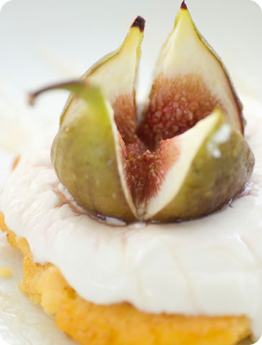 - מושחים על הפולנטה בקעריות מנה נדיבה של מסקרפונה מתובלת, מניחים מעל 2 תאנים, מזליפים עוד דבש ומגישים.