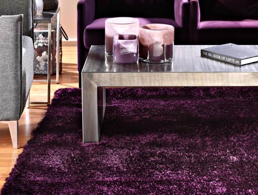 אם רוצים מקום מאוד מאופק שיש בו תחושה של מכובדות – אפשר להוסיף לשחור סגולים כהים. צילום: דן פרץ (כרמל שטיחים)