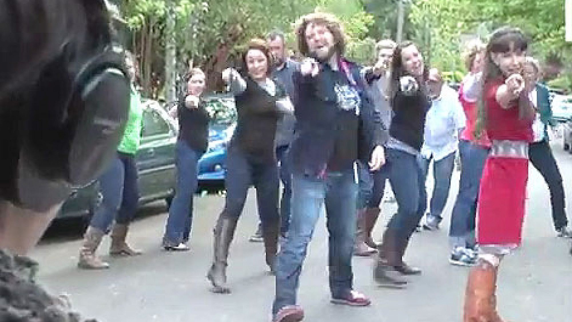 המכונית החלה לנסוע (לאט, כמובן), ולאט לאט, ככל שהנסיעה נמשכה, החלו להופיע על הכביש 60 בני משפחה וחברים ורקדו לצלילי השיר "להתחתן איתך (Marry you) של ברונו מארס – שכמובן התנגן גם באוזניות שהוצמדו לראשה – תוך שהם עושים תנועות עם השפתיים (ליפ דאב). היא אמרה "כן", למקרה שתהיתם.