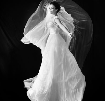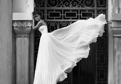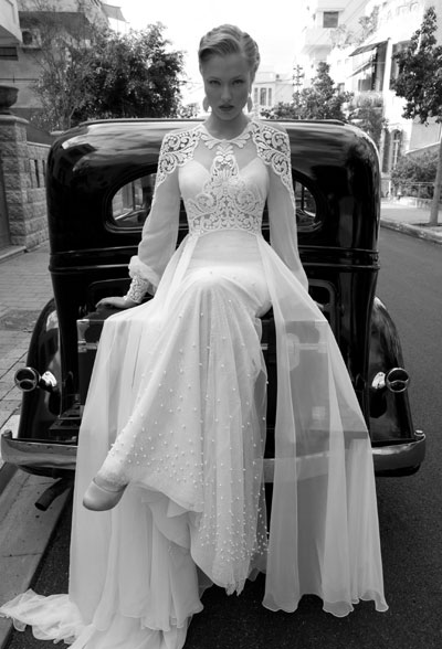 שימוש בבדים קלילים כמו משי, שיפונים וסאטנים נשפכים. שמלת כלה של גליה להב (צילום: יניב אדרי)