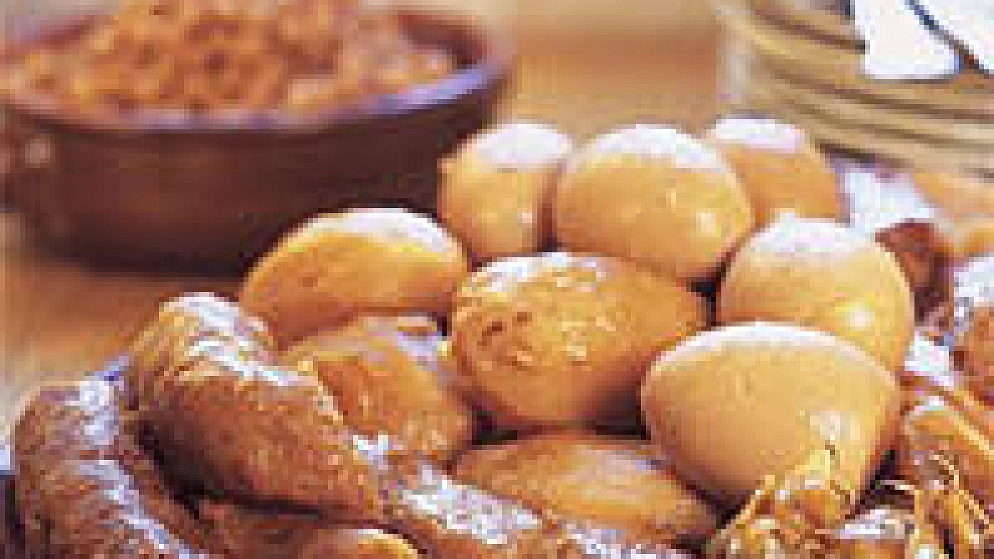 - מסדרים בבסיס הסיר את החומוס, חתיכות הבשר, העצמות, תפוחי האדמה, הבטטות והביצים.