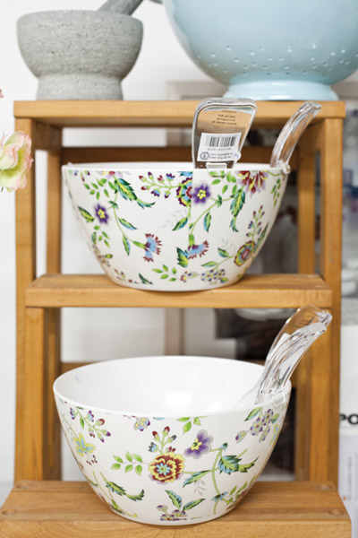 היא מכילה אוסף של פריטים יפים לבית, חלקם תוצרת כחול-לבן וחלקם היא או בתה מביאות מחו"ל. תמצאו אצלה הרבה פרחי משי ומוצרי טקסטיל מיוחדים שנתפרים במיוחד עבורה על ידי עולים חדשים, וכן כלי אוכל מיוחדים, פריטי נוי ועוד. משתלם במיוחד: קערות מלמין אביביות המעוטרות בפרחים, במחיר של 30-23 שקלים בלבד.