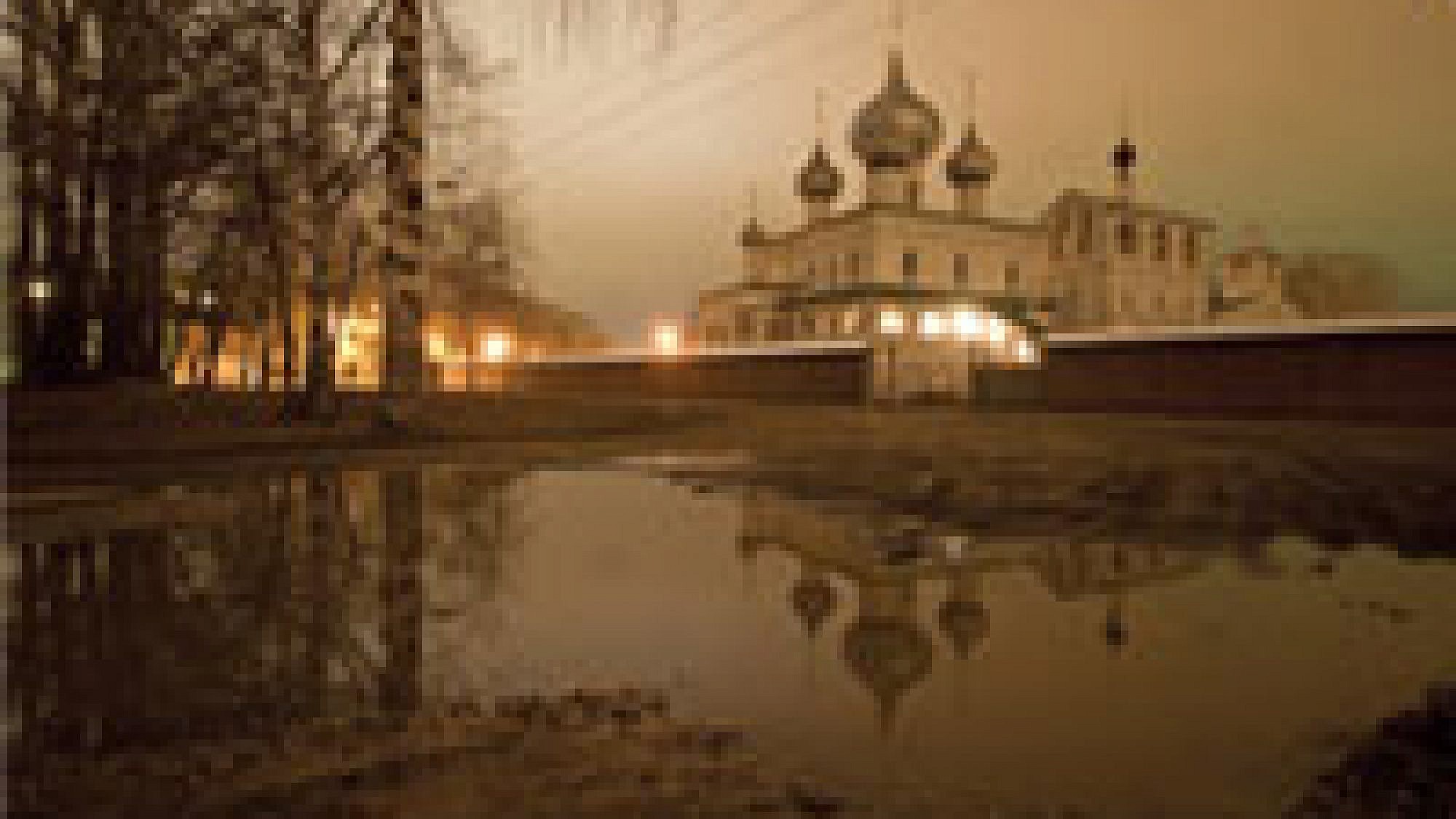 הכביש לעיירה קלאזין (Kalyazin) עטוף ביער. הצמיגים מרשרשים על האספלט הרטוב, ומראה גזעי העץ שמתחלפים במהירות מעייף את העיניים. מדי פעם היער נפתח ושדות רוסיים אינסופיים נפרשים לאופק. כשאני מגיע אל קלאזין בשעה חמש אחר הצהריים, החשכה כבר יורדת. הכביש שאני נוסע בו הופך לרחוב הראשי של העיירה, ותנועה ערה של אנשים החוזרים לביתם מהעבודה ניכרת בו. הרחוב, הנושא את שמו של קרל מרקס, מואר בכמה פנסי רחוב צהובים, אך מצדיו, צעדים ספורים ממנו, הכל שקוע בעלטה. אחרי כחצי קילומטר הרחוב נקטע, וממנו ואילך החשכה שולטת.