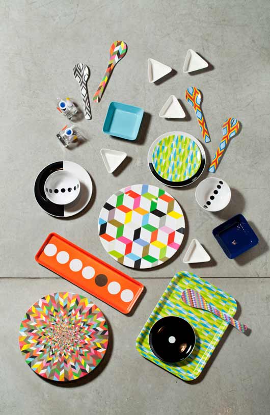 צלחות בצורת משולש, 70 שקלים ליחידה; צלחות מרובעות בטורקיז וכחול, 130 שקלים ליחידה, iittala. כפות הגשה שונות, 54.90-39.90 שקלים לזוג; מגשים עגולים גדולים, 139.90 שקלים ליחידה, סוהו. צלחת מנה ראשונה בדוגמת משולשים, 22.90 שקלים; מגש מרובע בדוגמת משולשים, 49.90 שקלים, Golf&Co. מגש כתום עם דוגמת עיגולים, 35 שקלים; כוסות זכוכית עם דוגמת עיגולים, 5 שקלים ליחידה; קערות לבנות עם שורת עיגולים שחורים, 19 שקלים ליחידה; צלחות מנה עיקרית חצי שחור חצי לבן, 29 שקלים ליחידה; צלחת מנה ראשונה שחורה עם עיגול לבן, 19 שקלים, איקאה