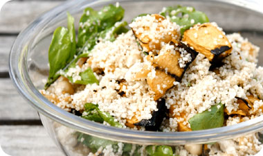 - מכינים את הקוסקוס בהתאם להוראות היצרן. מעבירים את הקוסקוס לקערה ומוסיפים את הדלעת, גרגרי החומוס ועלי הרוקט. יוצקים את הרוטב על הסלט ומערבבים בעדינות.