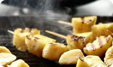 הכנה במטבח הביתי: צולים את שיפודי הפירות על פלנצ'ה לוהטת או אופים בתנור שחומם מראש ל- 220 מעלות כ-10 דקות.