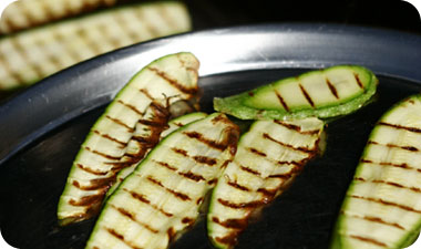 צולים את פרוסות הקישואים על פלנצ'ה או בתנור (על גבי נייר אפייה) בחום של 200 מעלות עד להזהבה. מבשלים את השעועית הירוקה במים רותחים במשך כ-3 דקות עד שהיא מתרככת אך עדיין נגיסה. ממשיכים לפי המתכון.