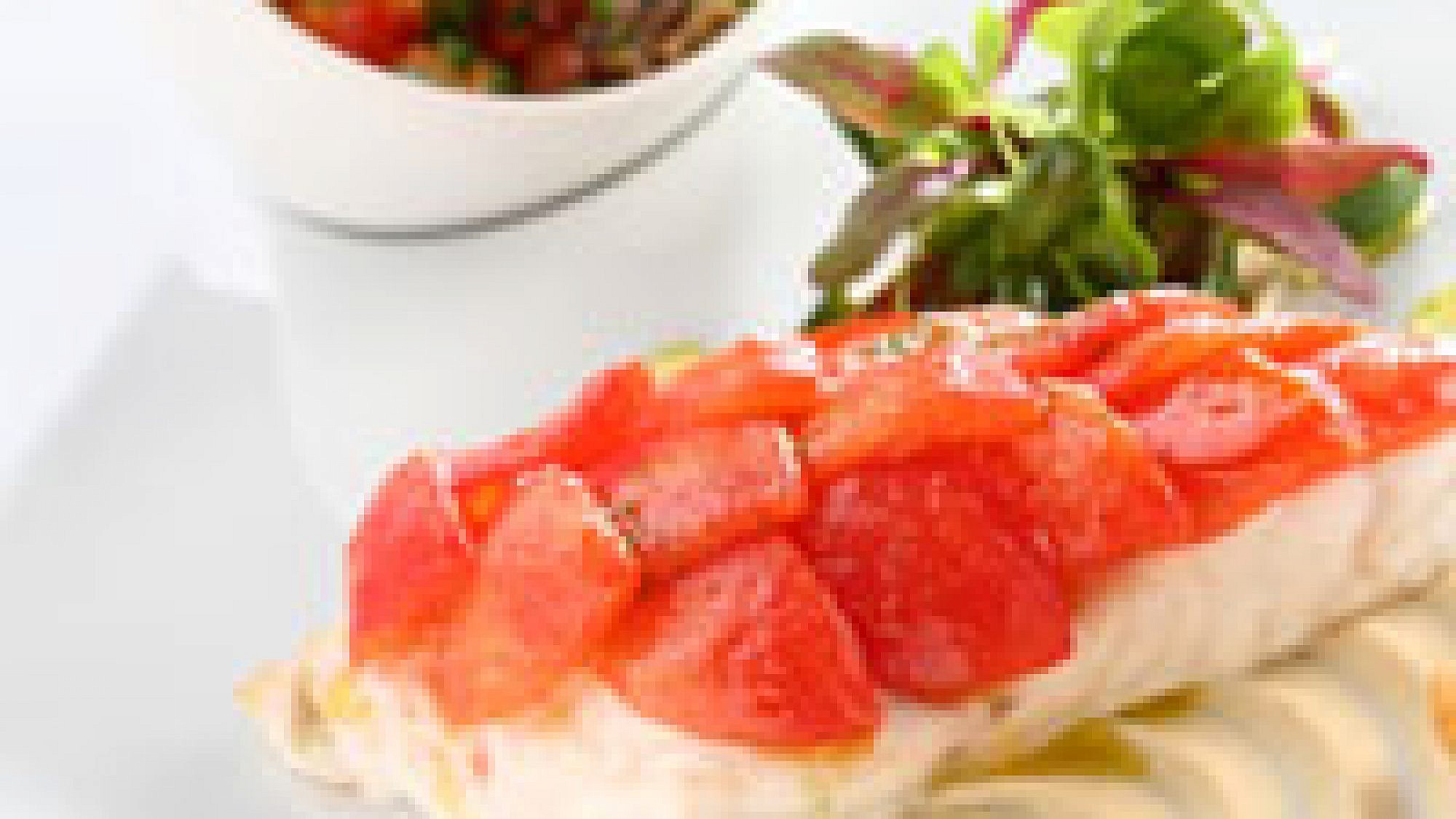 - 16 עגבניות שרי קלופות וחתוכות לפילה עגבנייה