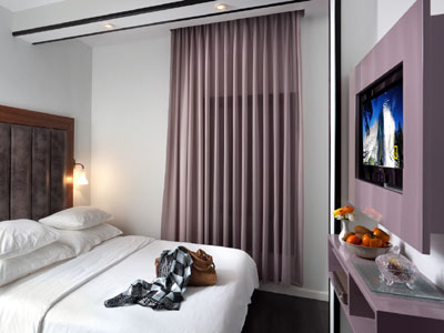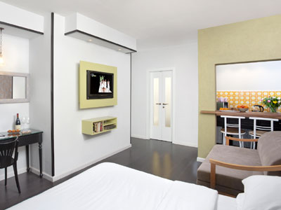 על החדר: במלון יש שני סוגים של חדרים: קלאסי ומודרני. אנחנו קיבלנו את החדר המודרני, המעוצב בסגנון נקי בגוונים בהירים וכולל טלוויזיית LCD (חיבור ל-yes), מטבחון קטן, פינת קפה ובה קומקום חשמלי, תיונים מכל מני סוגים, טוסטר ואמבטיה עם ג'קוזי.
