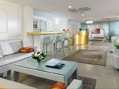 על הספא: מתחם הספא ממוקם בקומת ה-R של המלון, וכולל עמדת המתנה נעימה, המעוצבת בקווים נקיים, וכוללת כיסאות לבנים מרווחים ופינת קפה. מחיצה שקופה מפרידה בין הממתינים לעיסוי למתהלכים בין חדר הכושר, הסאונות והג'קוזי, ומאפשרת שקט ופרטיות. לאחר העיסוי המפנק ניתן לבלות באחת מהסאונות שבמקום, יבשה או רטובה או לצאת אל מתחם הבריכה והג'קוזי.