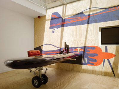 משרדי חברת רד בול באמסטרדם עוצבו בהשראת ספורט אתגרי ותרבות רחוב, וכוללים מעברים חדים בין הפרטי לציבורי ובין משחק לעבודה, ממש כמו המותג עצמו