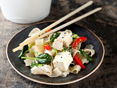 מנת נודלס צמחונית ועשירה בעלים ירוקים