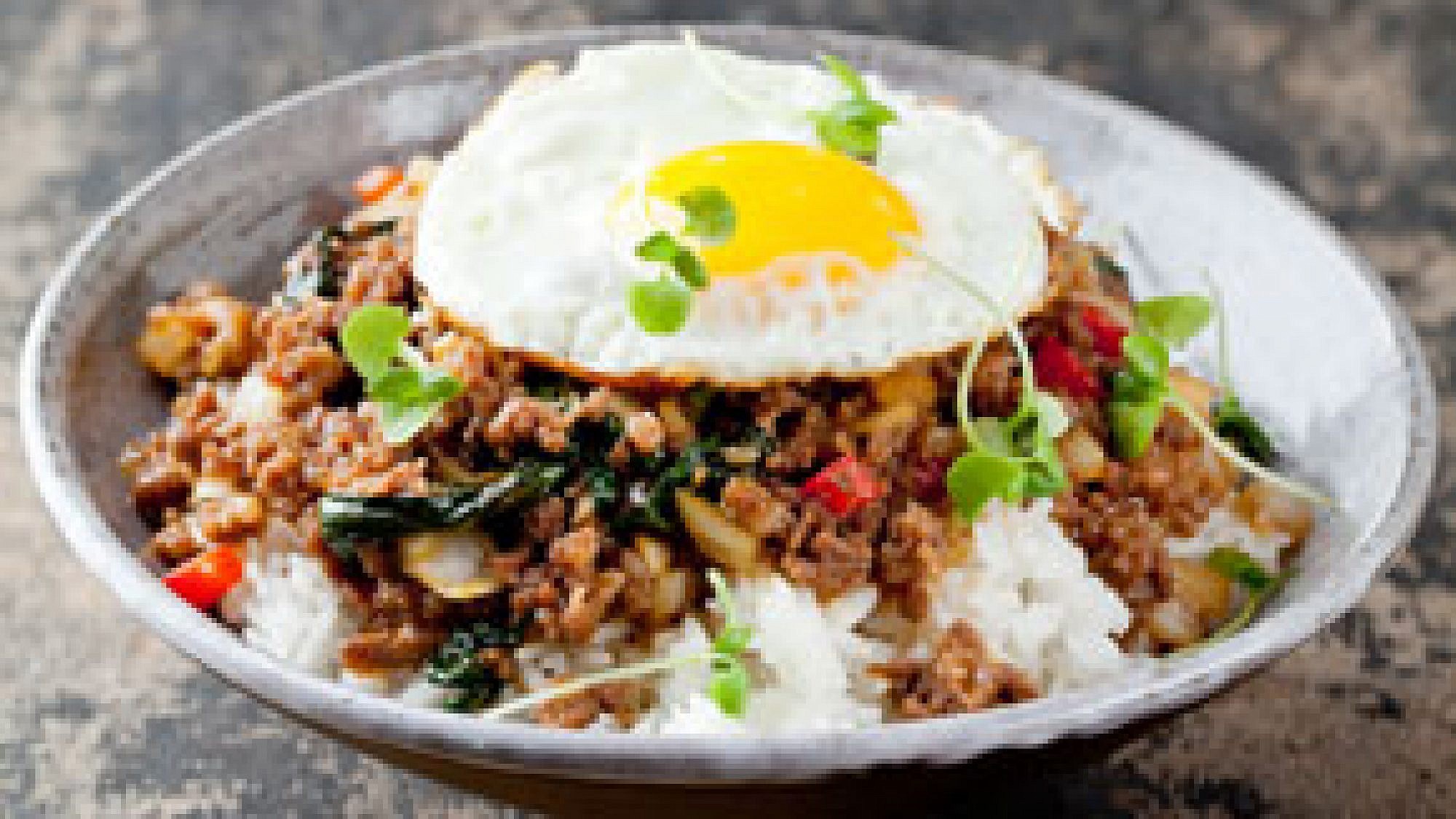 הבולונז התאילנדי. הוא מוגש עם ביצת עין רכה מעל ויש לערבב את החלמון הנוזלי במנה