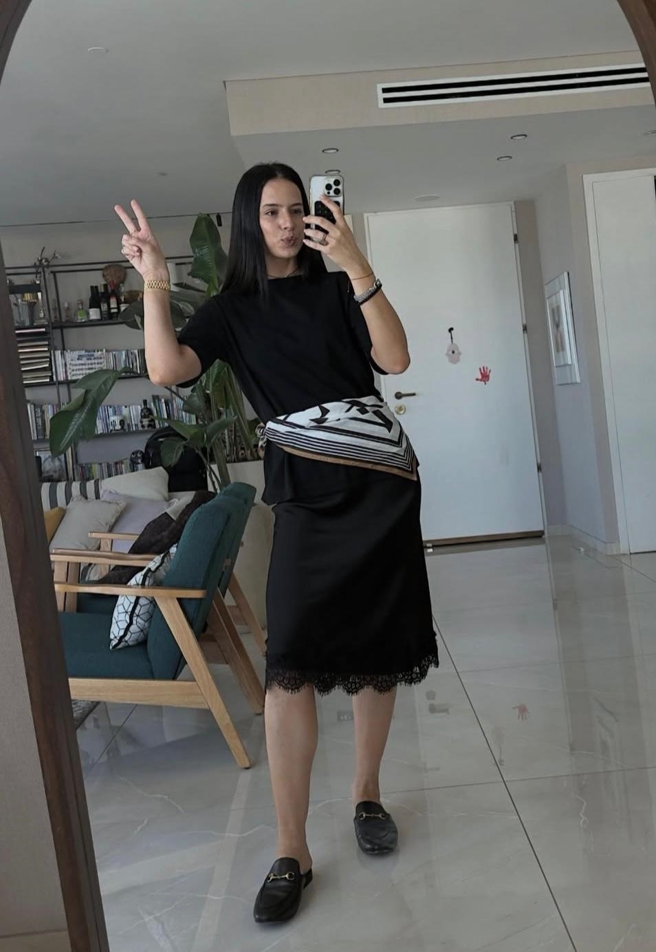כשהמטפחת פגשה את הסתיו: אנחנו רגילות לראות מטפחות על הראש או סביב הצוואר, אבל הטריק הכי מדובר של התקופה האחרונה הוא דווקא לקשור אותן סביב המותניים – בין אם זה מעל ג’ינס, שמלה או חצאית – ולקבל לוק א-סימטרי עם טוויסט. זה פשוט, נגיש, ושדרוג שלוקח בדיוק חמש שניות. ואז עינב בובליל לקחה את הטרנד הכי מדובר של הקיץ והלבישה אותו מחדש, בגרסה מחויטת, בוגרת ומדויקת. כן, זה עדיין טרנד המטפחת על המותן אבל פתאום הוא נראה אחרת לגמרי.