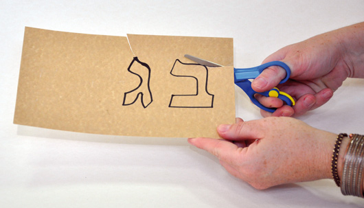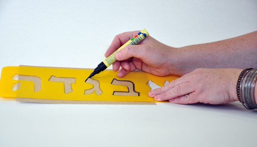1. מציירים עם השבלונות אותיות על הקרטון.
