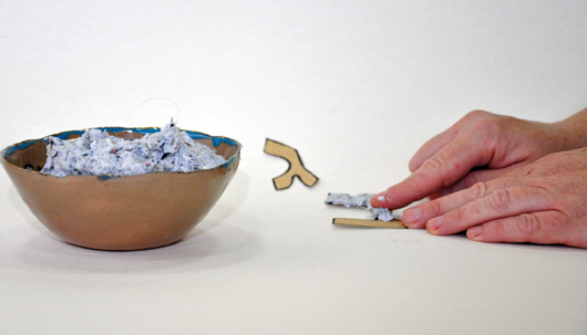 1. מגלגלים את הניירות בעזרת עיפרון לכדי גלילים צרים (ומוציאים אחר כך את העיפרון מתוך הגליל).