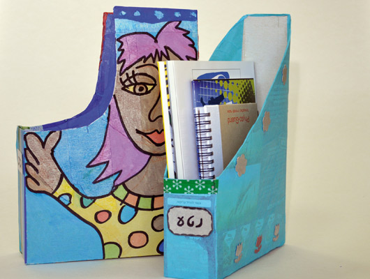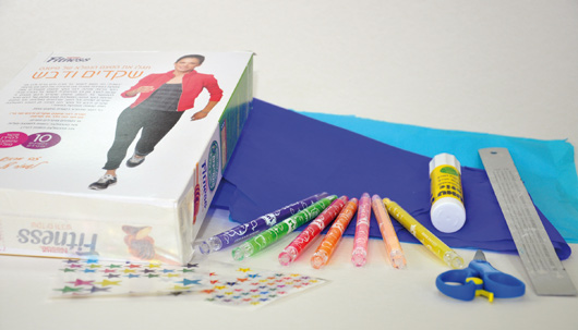 חומרים: קופסת דגנים ריקה, ניירות צבעוניים או דפים ממגזינים, מדבקות, טושים או צבעי גואש, מספריים, דבק, סרגל.