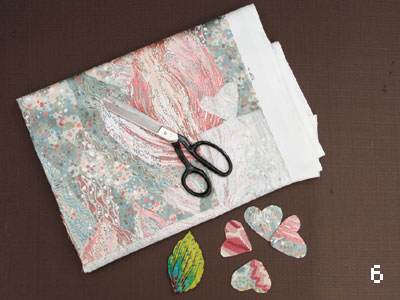 6. גזרו מהבד הפרחוני עלי כותרת בצורת לב, פרח או עלה. השתמשו בשניים-שלושה סוגי בדים לכל פרח.