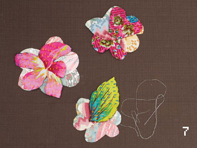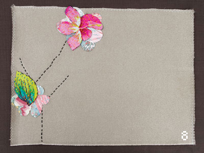 8. תפרו את הפרחים על גבי הפלייסמט בסמוך לענפים.