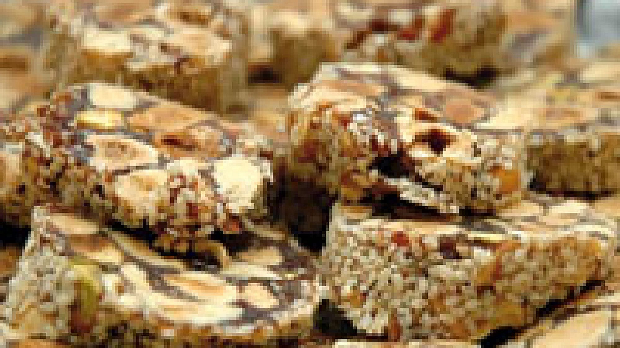 1 שוברים את האגוזים והשקדים לחתיכות גסות, ומערבבים.