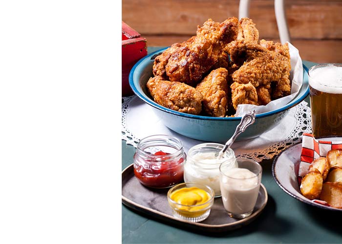 4. מטגנים את חלקי העוף בטיגון עמוק במשך 15¬-20 דקות, והופכים אותם מדי 5 דקות.