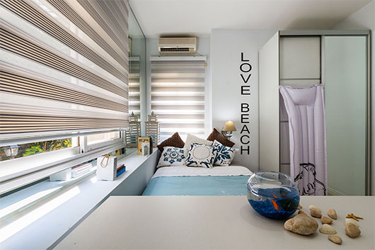 התוצאה היא חדר בהיר, מלא השראה ואהבה לים שמאפשר נגישות ונועם אל הפינות השונות בחדר.