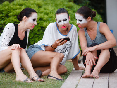 הדוגמניות מציצות בסלולרי. צילום: נועם עופרן