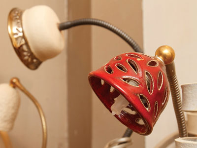 גופי התאורה של יהודית יונגרייס מעטרים את ביתה כמו יצירות אמנות ומפזרים צלליות מסולסלות על כל קיר. גם יונגרייס עסקה רוב השנים בתחומים אחרים לפרנסתה, ובין היתר עבדה יותר מעשור כמעצבת גרפית. את המנורה הראשונה שלה יצרה במסגרת חוג קרמיקה ותלתה בביתה. התגובות לא איחרו להגיע והחברים דרשו גם אחת לעצמם. אף שתחום היצירה חדש ליונגרייס, היא כבר הספיקה לעצב שתי סדרות של גופי תאורה: סדרת אורסולה בעלת הסלסולים וסדרת האביב שנוצרה בעקבות טיולי הבוקר עם הכלב וכוללת גופים בהשראת פרחים מכל הסוגים. את המנורות תוכלו לרכוש כמנורות זרוע, כמנורות קיר או כמנורות תלויות ואפשר גם להזמין מנורה בעיצוב אישי. טווח המחירים נע בין 300 ל-2,000 שקלים.