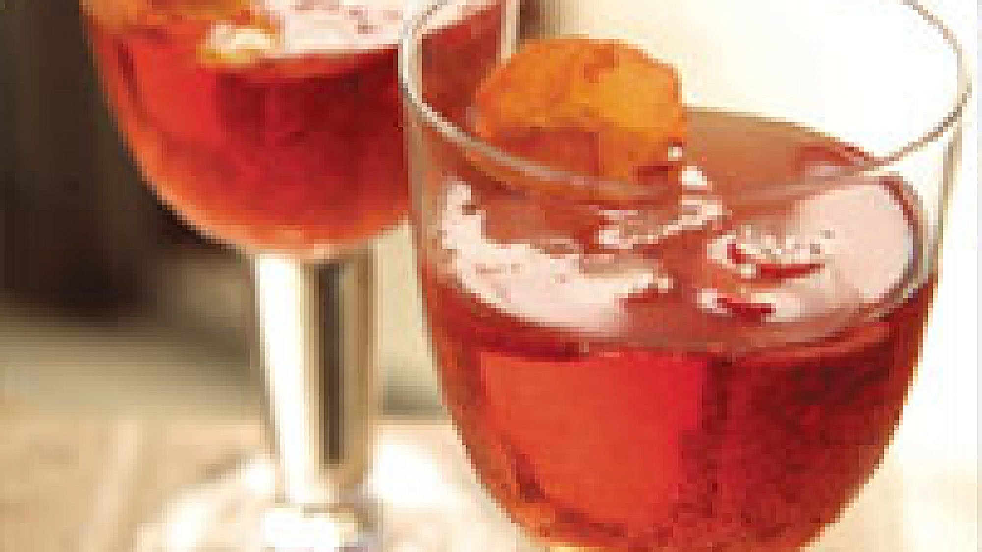 - יוצקים את יין הרוזה המקורר לקערת זכוכית, מוסיפים וודקה ומערבבים.