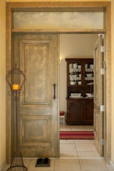 בכניסה לבית, מעבר לדלת הירקרקה, ניצבת תזכורת נוספת למסורת הארוכה של המשפחה: ארון עץ בסגנון אירופי עם ויטרינה מזכוכית המשמש לאחסון כלי חרסינה לבנים שהיה שייך להורי בעלה של לוי.