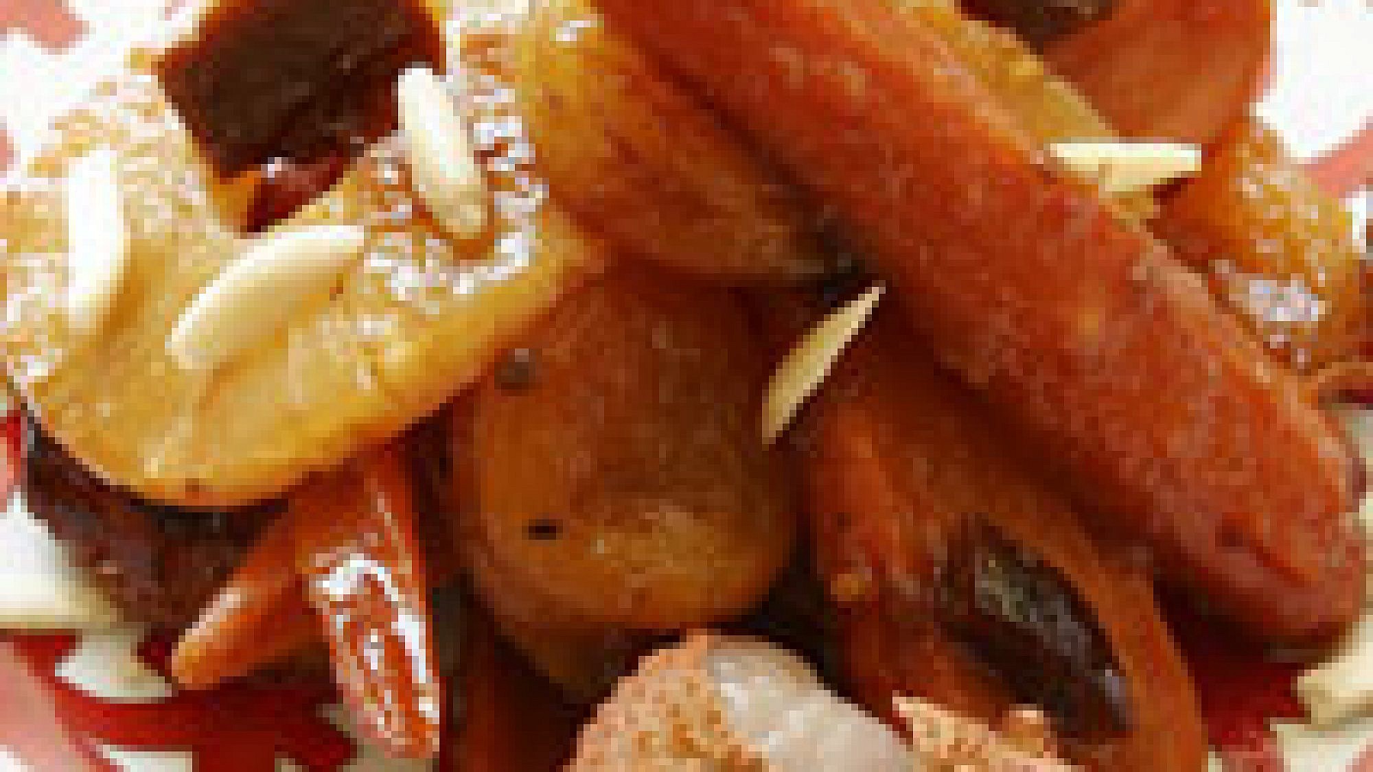 מתכון למנה המסורתית של גזר מתוק, הפעם בריבת תפוזים וג'ינג'ר עם אפשרות לסיומת של שבבי שקדים