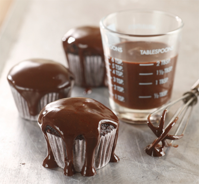 3. טובלים את הקאפקייקס בזיגוג השוקולד ומגישים מיד, או מאחסנים במקרר בכלי אטום עד יומיים.