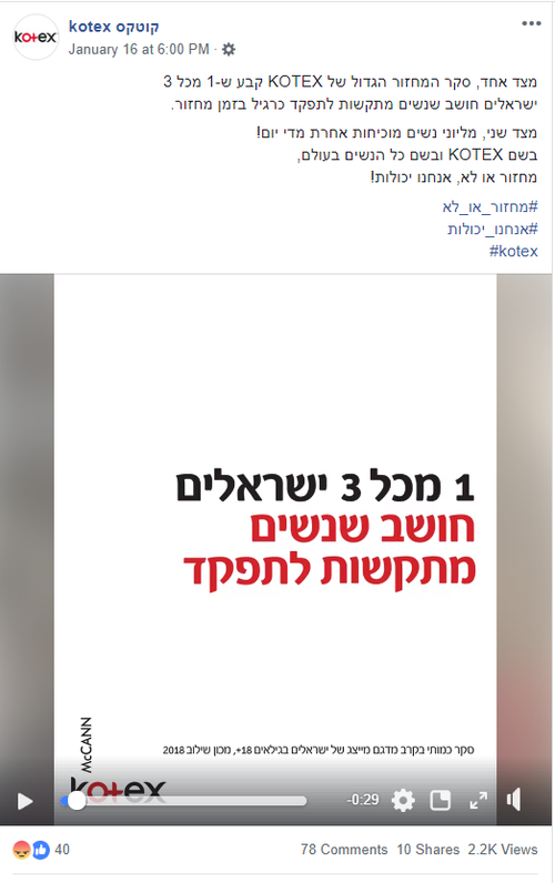 "במקרה של קוטקס נראה שמדובר פה באיזו שהיא טעות אנוש. אני חושבת שיש בפרסומת הזאת מין ניחוח ליברלי כזה של 'אם רק תרצי את יכולה' כי חס וחלילה שנגיד שמחזור זה דבר שכואב, ומפריע לנשים לתפקד. יש פה עוול כלפי קהל היעד. אם קהל היעד הוא נשים אז צריך לדבר אליהן ולא להקטין את התחושות והרגשות שלהן".