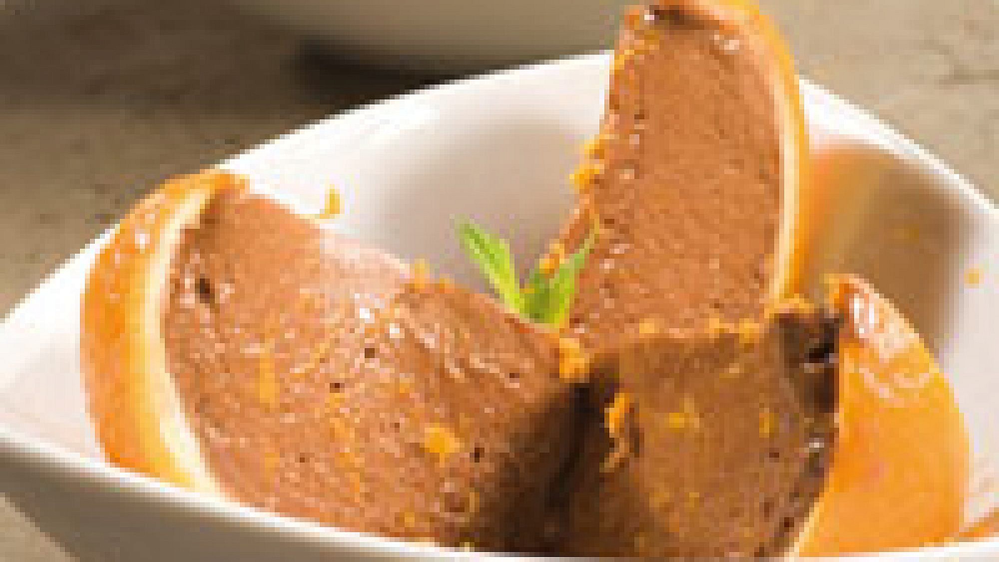 - שעתיים לפני ההגשה מעבירים למקרר, פורסים לפלחים בעזרת סכין חדה ומקשטים בגרידת תפוז ועלי נענע. אם המוס עדיין לא התרכך בשעתיים, משהים מחוץ למקרר במשך 10 דקות.