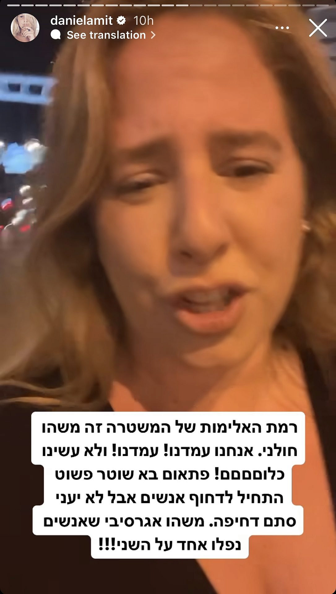אחרי שהמשטרה עיכבה את אביב גפן בהפגנה הגדולה בקפלן, חברתו בלוגרית האוכל דניאל עמית מספרת על החוויה הקשה שעברו: "רמת האלימות של המשטרה זה משהו חולני"